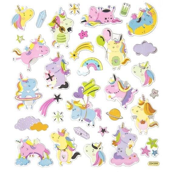 Foliowe naklejki z motywami uroczych muminkorożców czyli zwierzątek w typie muminków z rogiem i grzywą jednorożca.Pastelowe kolory i srebrne wykończenie nadają naklejkom wyjątkowego charakteru.Te słodkie naklejki mogą być efektowną dekoracją w pokoju dziecięcym jak i elementami do zdobienia...