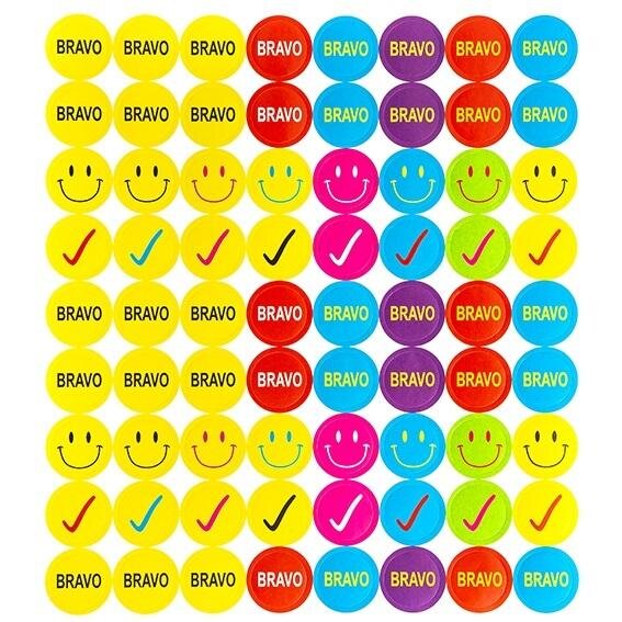 Zestaw naklejek motywacyjnych w rozmiarze 1,5 cm. Doskonałe do nagradzania za aktywność i postępy w nauce.