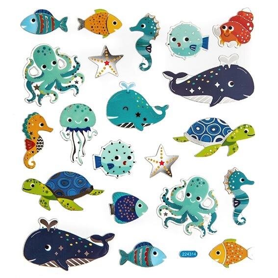 Foliowe naklejki z motywami bajkowych, podwodnych zwierzątek takich jak np. koniki morskie, zółwie, kraby, ośmiornice czy meduzy. Nie mogło zabraknąć także wielorybów i kolorowych rybek.Charakterystyczne błękity i srebrne wykończenie nadają naklejkom nieco wakacyjnego stylu.Te słodkie naklejki...