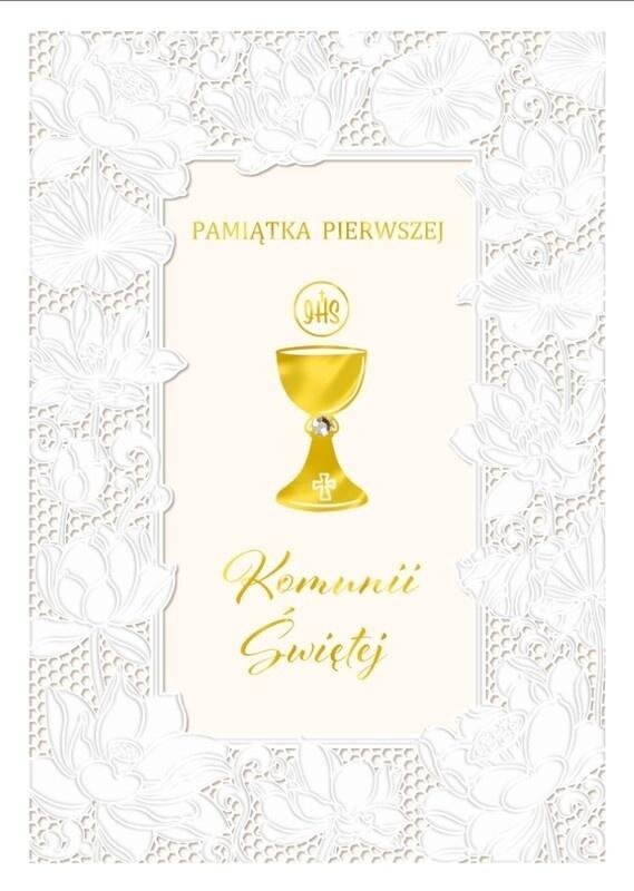 Elegancki karnet na Pierwszą Komunię Świętą w formacie B6 z laserowo wycinanym wzorem. Delikatny, ażurowy motyw z symbolami religijnymi, takimi jak hostia, krzyż czy gołąb. Wewnątrz miejsce na życzenia i dane uroczystości. Idealna pamiątka tego ważnego dnia. prečítať celé