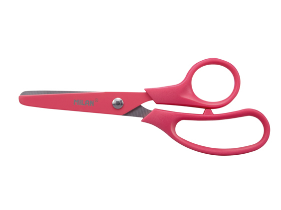 Nożyczki z ostrzem w kolorze rękojeści. Ostrze ze stali nierdzewnej z zaokrągloną końcówką. Plastikowa rączka. Idealny do użytku w szkole. Kolor różowy. Wymiar: 13,4 cm. prečítať celé