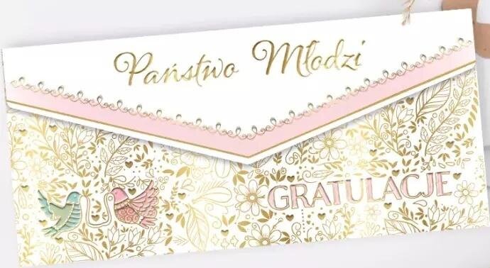 Ozdobna koperta na pieniądze, złocona i tłoczona. W zestawie wkałdka z życzeniami oraz koperta ochronna. prečítať celé