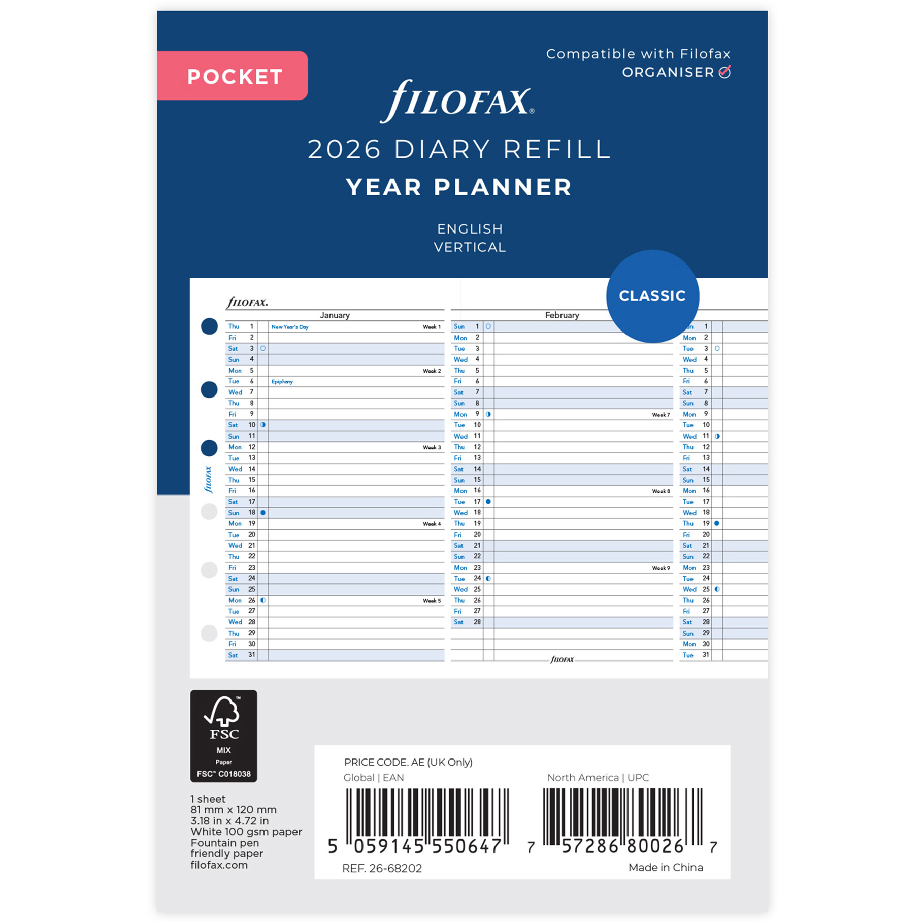 Filofax, Plánovací Kalendář 2026 kapesní, vertikální, AJ