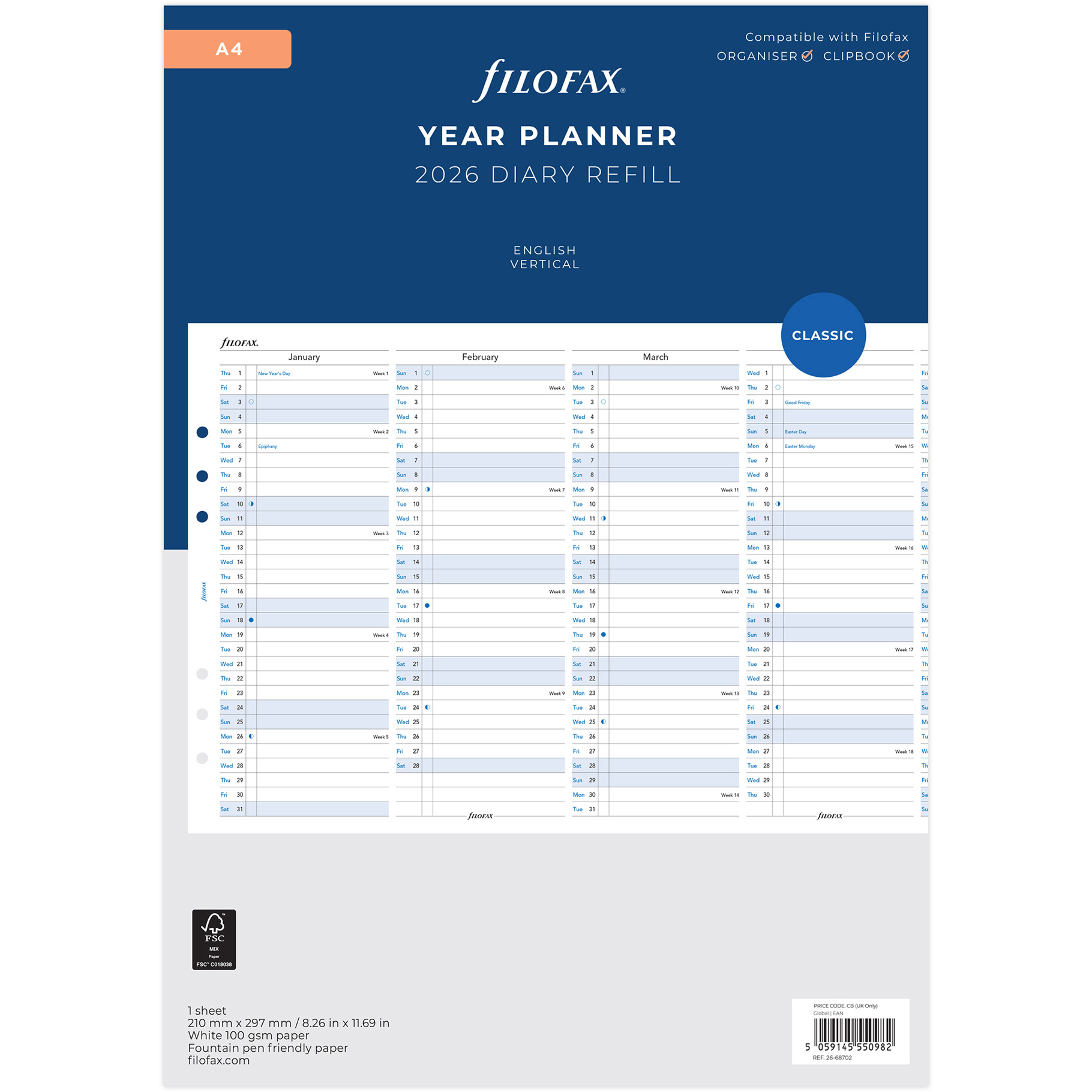 Filofax, Plánovací Kalendář 2026 A4, vertikální, AJ
