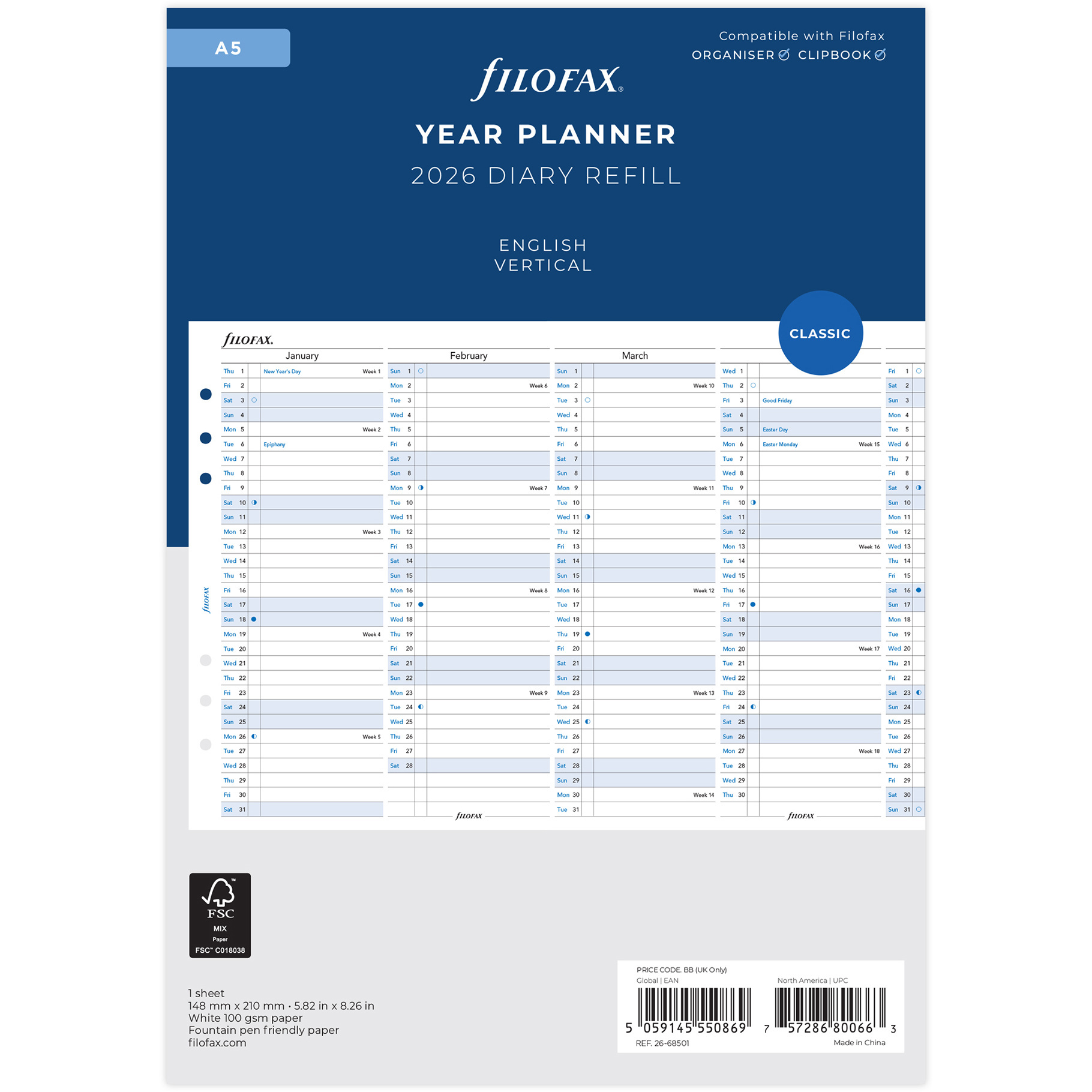 Filofax, Plánovací Kalendář 2026 A5, vertikální, AJ