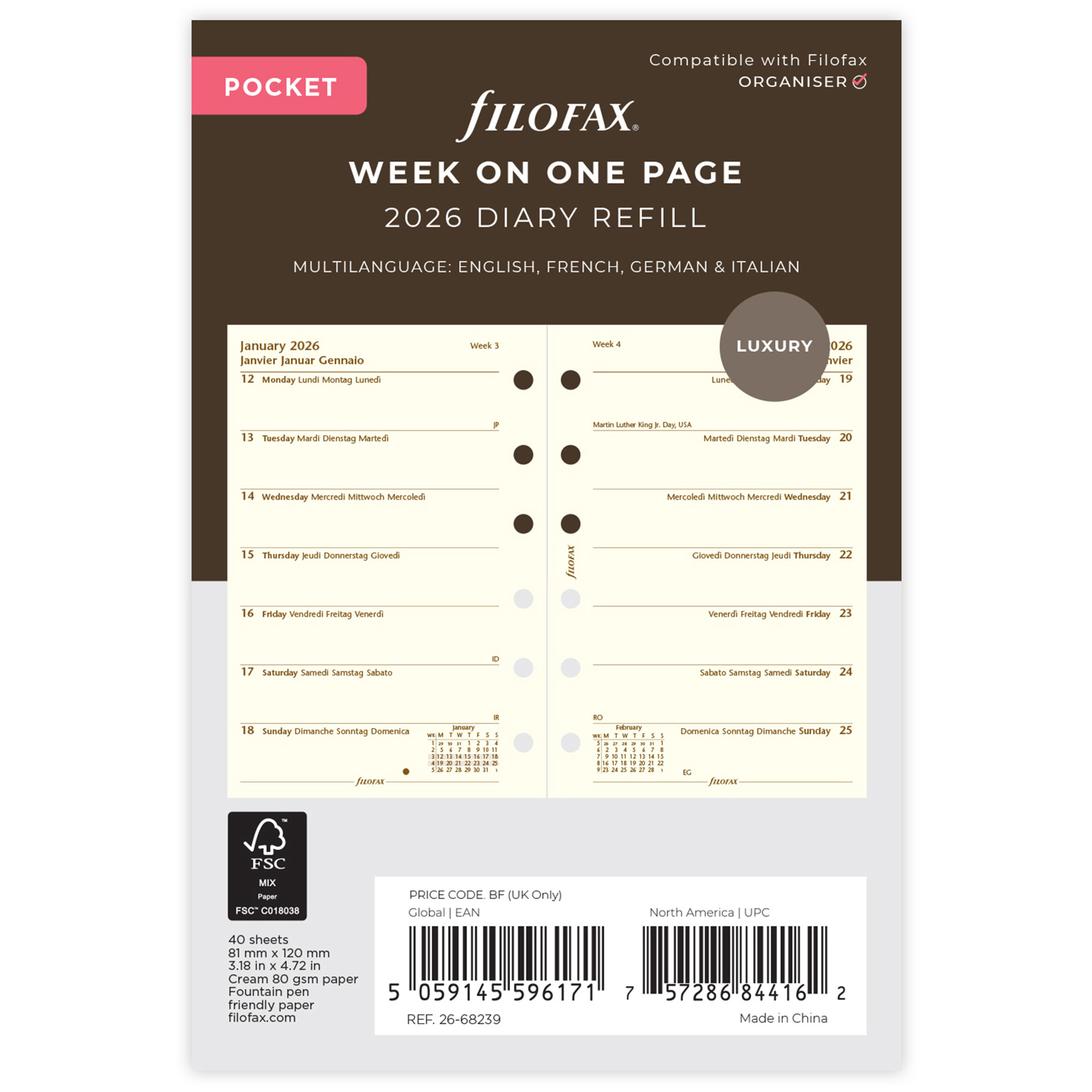 Filofax, Kalendář 2026 kapesní, týden/1 strana, krémová, 4 jazyky