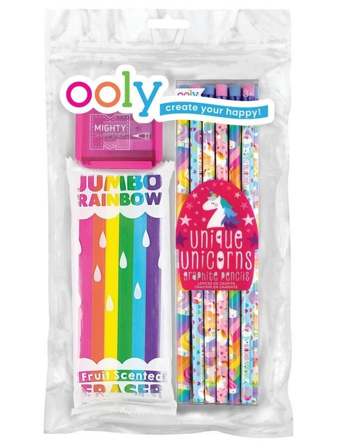 Ołówki Jednorożce - Duża Gumka Pachnąca Tęcza - Temperówka Na 3 Grubości* - Rozmiar: 16.5x27.5x3 cm - Opakowanie do zawieszenia prečítať celé