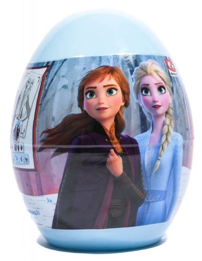 Kraina Lodu 2, Jajko Niespodzianka XXL. Fantastyczne jajko niespodzianka z grafiką z uwielbianego przez dzieci, kultowego filmu "Kraina Lodu II". Każde Jajko skrywa wewnątrz inną niespodziankę: kolorowanki, długopis, naklejki, kredki etc. Wymiary: wys. 22 cm x obwód 49 cm. Uwaga: zawiera małe elementy, chronić dziecko przed połknięciem.