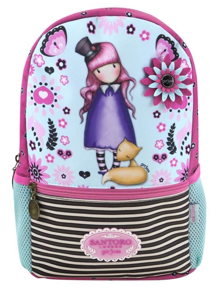 Mały Plecak - Gorjuss - The Dreamer. Wyjątkowo praktyczny i piękny plecak z wizerunkiem dziewczynki Gorjuss w odcieniach błękitu i pudrowego różu. Ma miękkie i wygodne uchwyty do założenia na plecy z regulacją długości. Kieszenie zamykane na suwaki ozdobione medalionami w stylu antycznego...