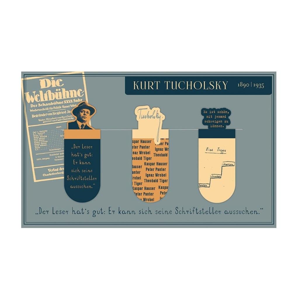 Zakładki magnetyczne - Kurt TucholskyNie tylko zaznaczają strony, ale także wyglądają z książki na górze i dlatego przyciągają wzrok.Szczególnie odpowiednie dla miłośników sztuki i literatury.Trzy zakładki magnetyczne w zestawie są tematycznie skoordynowane.Każdy zestaw dotyczy znanego pisarza z...