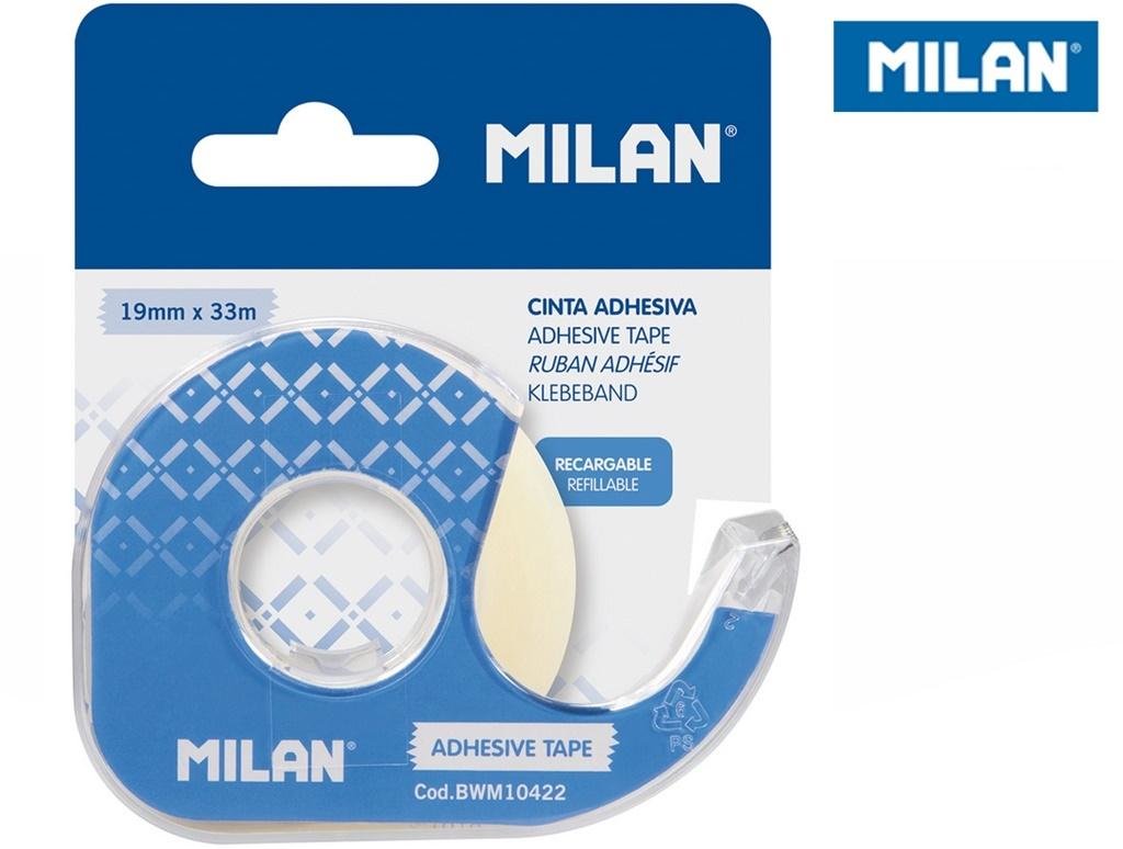 Taśma MILAN samoprzylepna niewidoczna krystaliczna 19 mm x 33 m na dyspenserze z metalowym ostrzem wielokrotnego użytku. Bardzo dobrze trzyma. Nie żółknie z czasem. Średnica taśmy 5,5 cm. prečítať celé