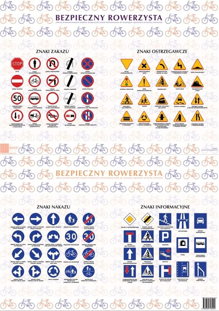 BEZPIECZNY ROWERZYSTA-znaki drogowe-podkładka dwustronna laminowana format A-2 prečítať celé