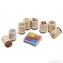 Zestaw drewnianych pieczątek zapakowanych w wygodny, plastikowy słoiczek.