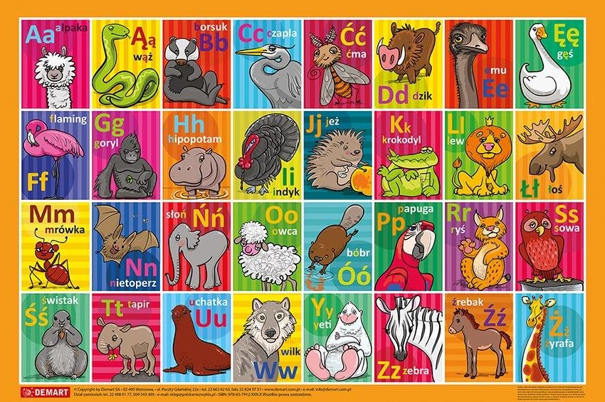 Podkładka z polskim alfabetem jest sympatyczną pomocą wspomagającą młodego ucznia. Pokazuje różnice w graficznym obrazie małej i dużej litery drukowanej, przykładowe wykorzystanie wszystkich liter w zapisach nazw zwierząt oraz uczy kolejności liter w polskim alfabecie, z uwzględnieniem polskich...