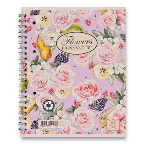 Kroužkový blok Pigna Nature Flowers A5, čtverečkovaný, 60 listů, mix motivů