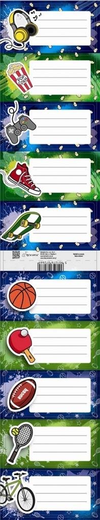 Mix wzorów, towar wysyłany losowo.NAKLEJKI NA ZESZYTY - na każdej naklejce miejsce na wpisanie imienia, nazwiska i klasy. Wysokość: 23 cm; szerokość: 9 cm cm. Dwa arkusze z naklejkami w opakowaniu, na każdym 10 szt. naklejek prečítať celé