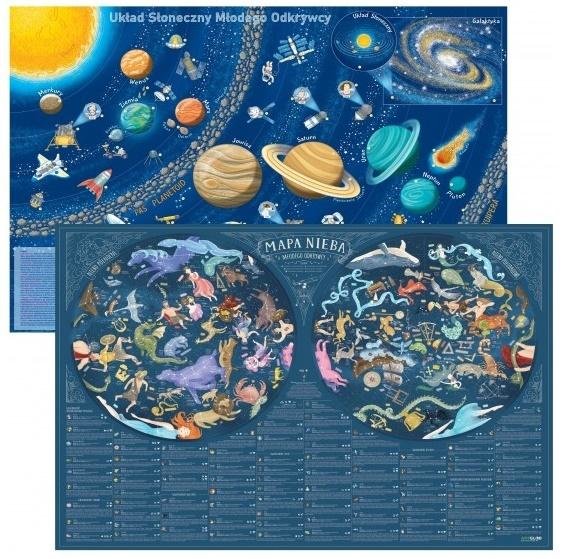 Dwustronna podkładka na biurko: Układ Słoneczny Młodego Odkrywcy - Mapa Nieba Młodego Odkrywcy dla dzieci.Pierwsza strona podkładki zawiera Mapę Układu Słonecznego.Wreszcie nadszedł czas na podbój kosmosu! Mapa ta dzięki oryginalnej grafice połączonej z miłą dla oka kolorystyką w przyjemny sposób...