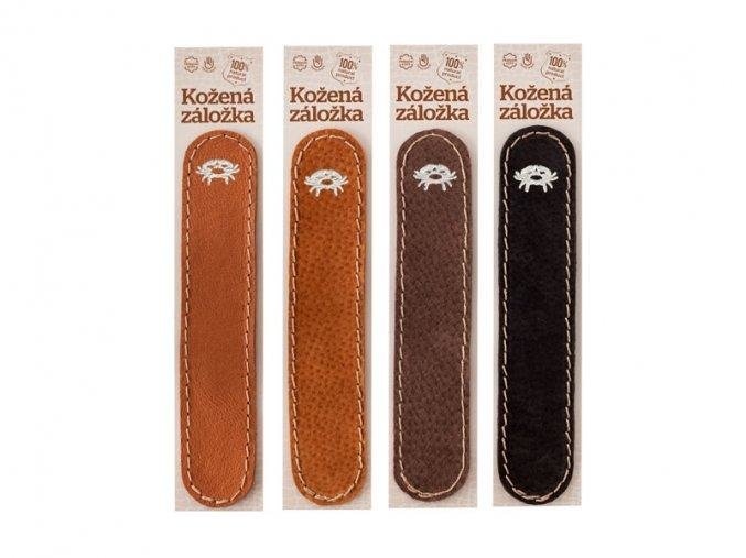 Kožená záložka do knihy Rak - kůže hnědá semiš, zlatá ražba