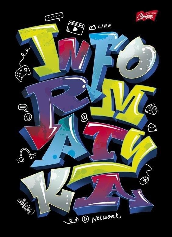 Cechy produktu:- zeszyt przedmiotowy - informatyka- format A5- ilość kartek 60- liniatura kratka- czerwony margines- zaokrąglone rogi- wkładka adresowa- wkład zeszytu - papier offset, gramatura 70 g/m2- okładka - kredowa, laminowana- modna grafika okładek- zadruk wewnętrzny okładki - ściąga z...