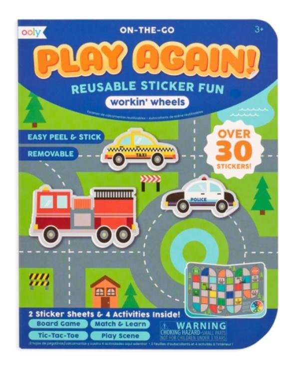 Naklejki wielorazowe mini z grą Play Again Pojazdy