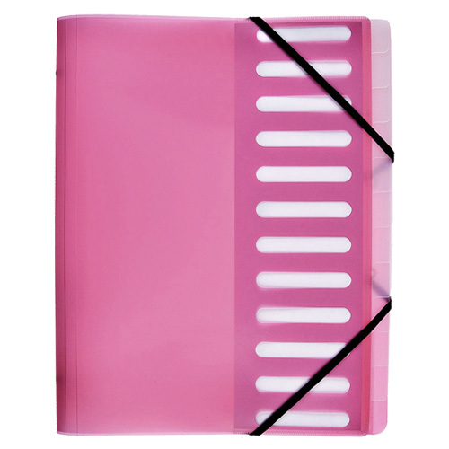 Plastová třídící kniha značky Idena. Pořadatel pro dokumenty A4 na předběžné třídění nebo archivaci, vhodný pro různé účely. 12 přihrádek s úchytkami, na předním krytu je vyměnitelný indexový list. Materiál tmavě růžového průsvitného plastu. prečítať celé