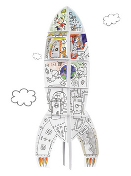 Originální vymalovávací hračka pro malé kosmonauty. Čtyřpatrová konstrukce je složena ze samostatných dílů, které si děti mohou nejdříve vymalovat a poté složit jako Raketu a hrát si s ní. Pevný karton použitý pro Raketu je vhodný pro vymalování pastelkami, voskovkami, fixy nebo barvami....