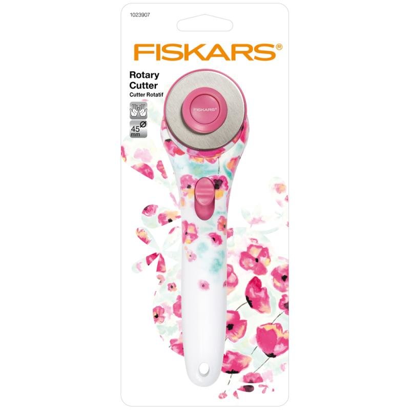 Řezací kolečko na látku Fiskars 1023907 s motivem květin má rovnou zaoblenou rukojeť. Tlačítko pro uzamknutí a odemknutí krytu čepele. Symetrický design pro řezání pravou i levou rukou. Čepel je výměnná a dodává se jako náhradní díl. Pro praváky i leváky. prečítať celé