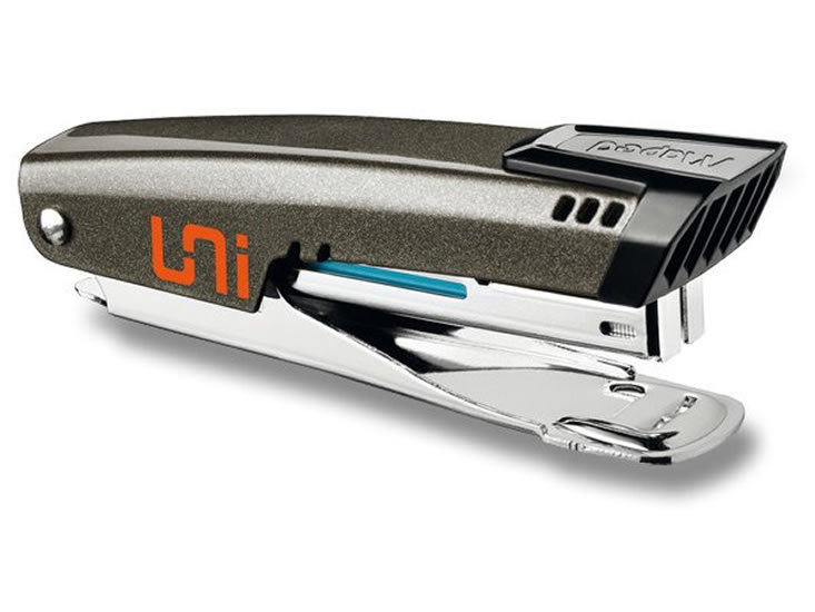 Malá kovová sešívačka se zabudovaným rozešívačem. prečítať celé