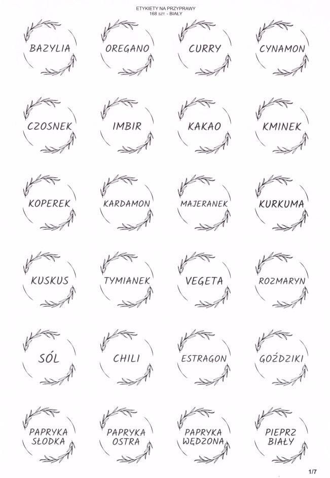 Zestaw naklejek funkcyjnych na słoiki lub inne pojemniki z przyprawami, średnica 40mm. kolor białe prečítať celé