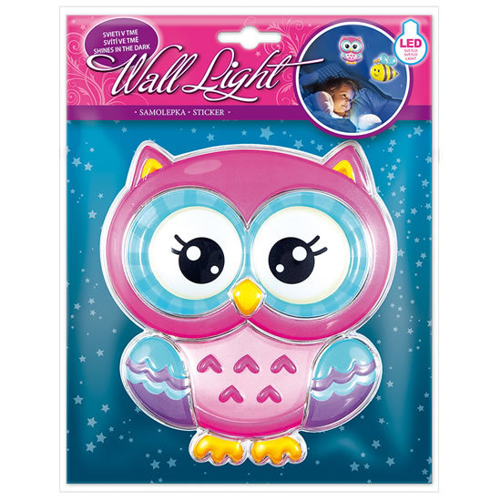 Wall light Sova - samolepící svítící dekorace 20x25,5 cm