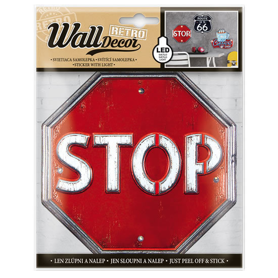 Wall decor Retro STOP - samolepící svítící dekorace 18x23 cm