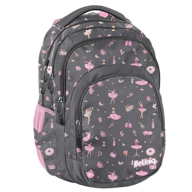 Plecak szkolny. Trzy pojemne komory, kieszeń przednia z organizerem, 2 boczne kieszenie z siatki + materiał. Wzmocnione profilowane plecy, miękkie wygodne szelki. Wzmocniony i usztywniony spód. Wygodny uchwyt do przenoszenia i uszko do powieszenia. W komorze głównej przegroda (na laptop), w...
