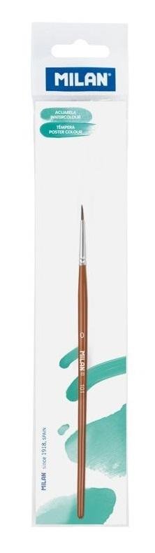 Szkolny okrągły pędzel serii 101 nr 0 z krótkim drewnianym trzonkiem. Skład: 70% naturalnego włosia koziego + 30% syntetyczne. Brązowe lakierowane wykończenie i aluminiowa skuwka bez spawania, odporna na rdzewienie. Bardzo miękkie włosie idealne do akwareli, technik wodnych i farb plakatowych....