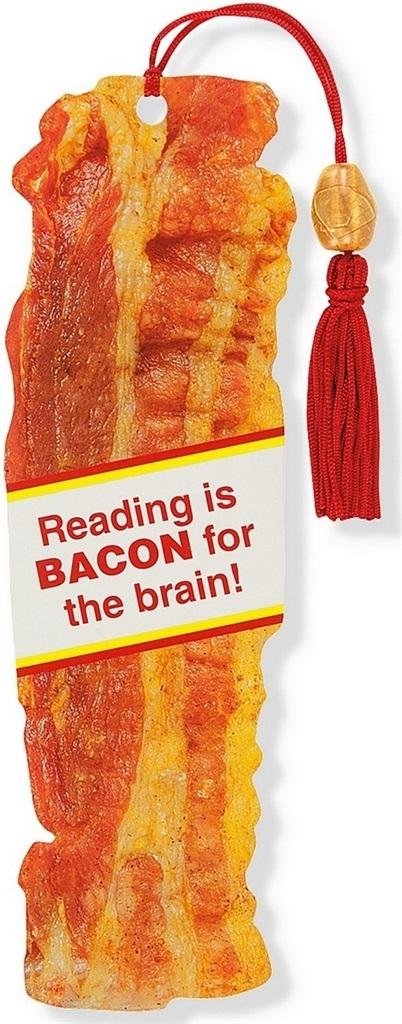 Zakładka do książki firmy Peter Pauper Press - Bekon (Bacon). Każda zakładka ma dopasowaną kolorystycznie wstążkę z frędzlem oraz koralik. Barwne, trwałe, zabawne lub motywujące nadruki sprawią, że czytanie będzie jeszcze ciekawsze. Każda zakładka jest drukowana na trwałym, powlekanym kartonie i pakowana z przezroczystą osłonkę. Uniwersalny wymiar 6,4 x 18,1 cm.