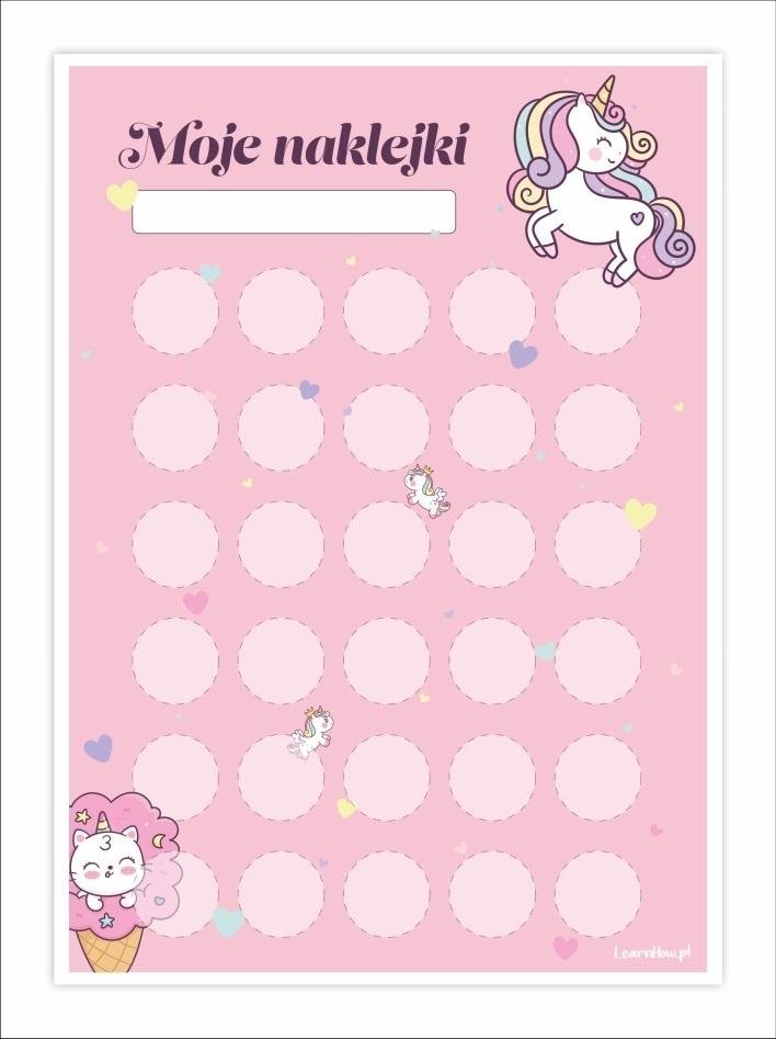 KARTA MOTYWACYJNA - KARTA NA NAKLEJKI 20 MM - JEDNOROŻCE(1 sztuka, A5)Karta motywacyjna na naklejki dla uczniów, dzienniczek naklejek to idealny dodatek do naklejek.Karta będzie świetnie służyła jako naklejkowy dzienniczek dla dzieci.Pozwoli ona zbierać i kolekcjonować wszystkie naklejki...