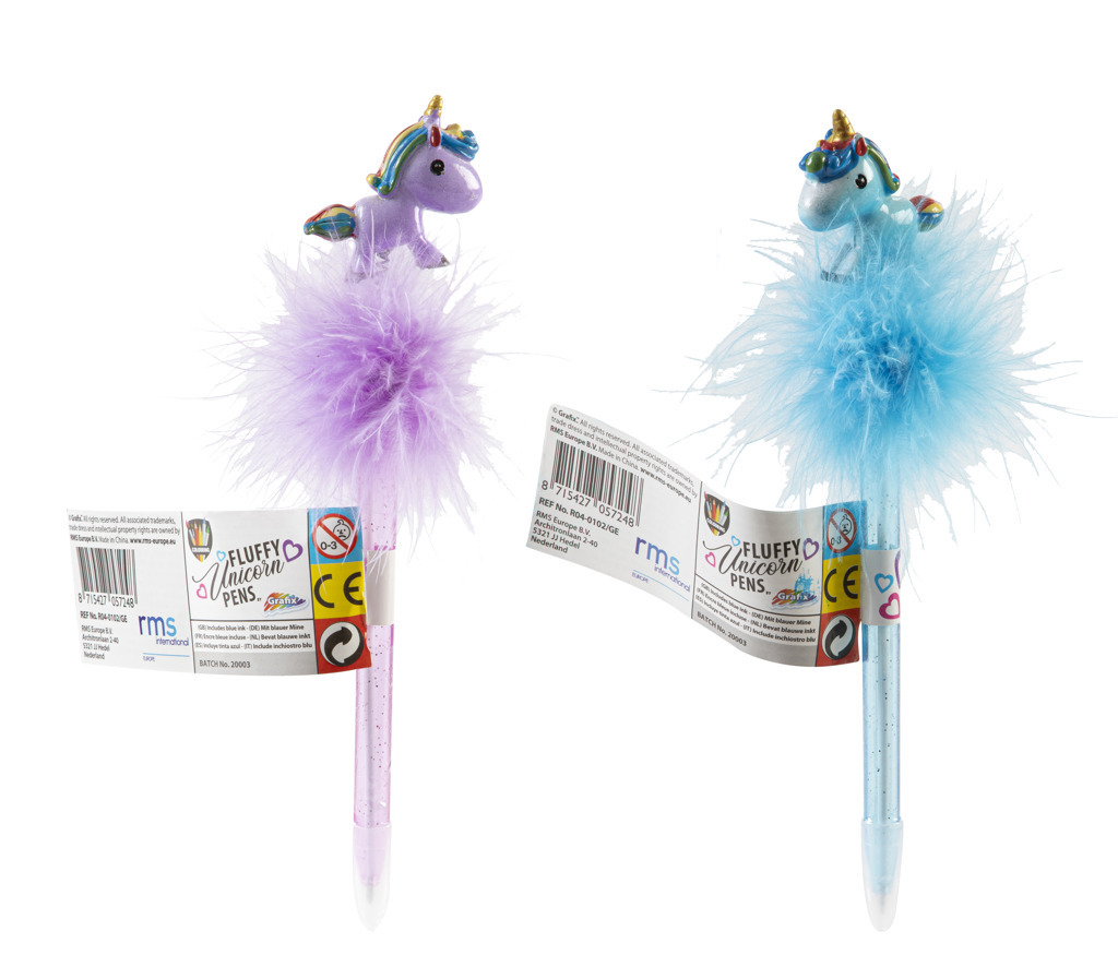 Propisovací tužka s bambulí a jednorožcem ve třech barvách – fialová, růžová a modrá. prečítať celé