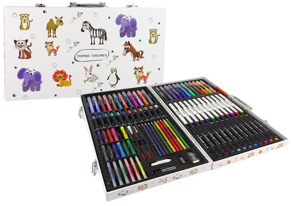 Ogromny Zestaw Artystyczny Do Malowania 94 Elementy ! W walizce z nadrukami wesołych zwierzątek Ogromny zestaw do malowania i rysowania to wspaniała rzecz na początek artystycznej przygody dla dzieci. Komplet jest funkcjonalny i składa się łącznie z 94 przydatnych części oraz praktycznej walizki....