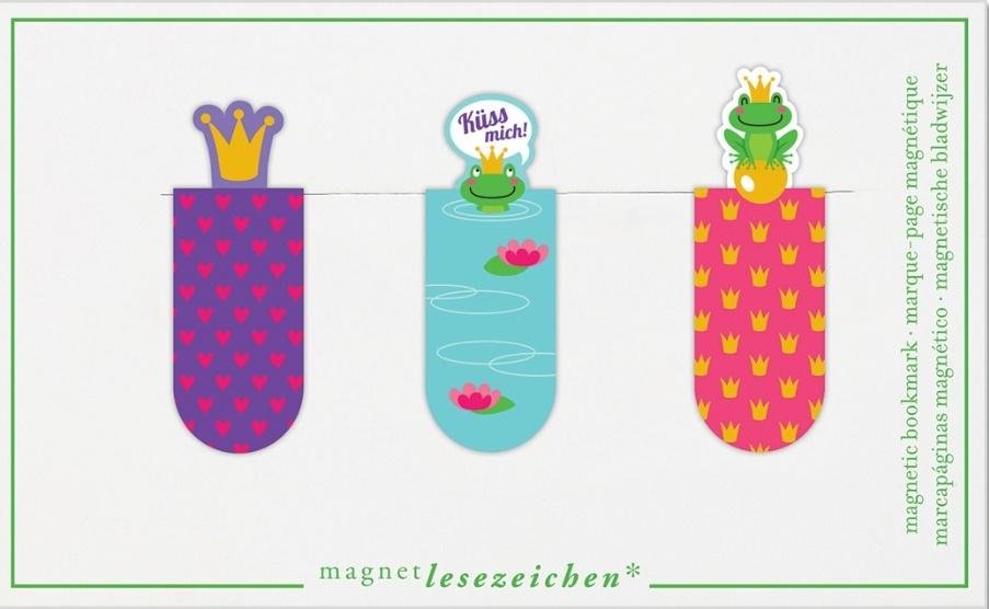 Zakładki magnetyczne - Żaba. Pięknie ilustrowane zakładki z wystającymi, ozdobnymi elementami. Idealne do zaznaczania ostatnio czytanych lub ulubionych fragmentów książek. Doskonale sprawdzają się w indeksowaniu notatek, dokumentów w biurze, w szkole i w domu. Każdy zestaw zawiera 3 zakładki o różnych wzorach, skoordynowanych tematycznie.