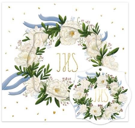 Składany z trzech stron kwadratowy karnet o wymiarach 15 x 15 cm z wyciętym elementem na froncie. Złocony i tłoczony, teksy życzeń w środku. Wydrukowany na wysokiej jakości papierze. W zestawie koperta. prečítať celé