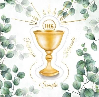 Składany z trzech stron kwadratowy karnet o wymiarach 15 x 15 cm z wyciętym elementem na froncie. Złocony i tłoczony, teksy życzeń w środku. Wydrukowany na wysokiej jakości papierze. W zestawie koperta. prečítať celé