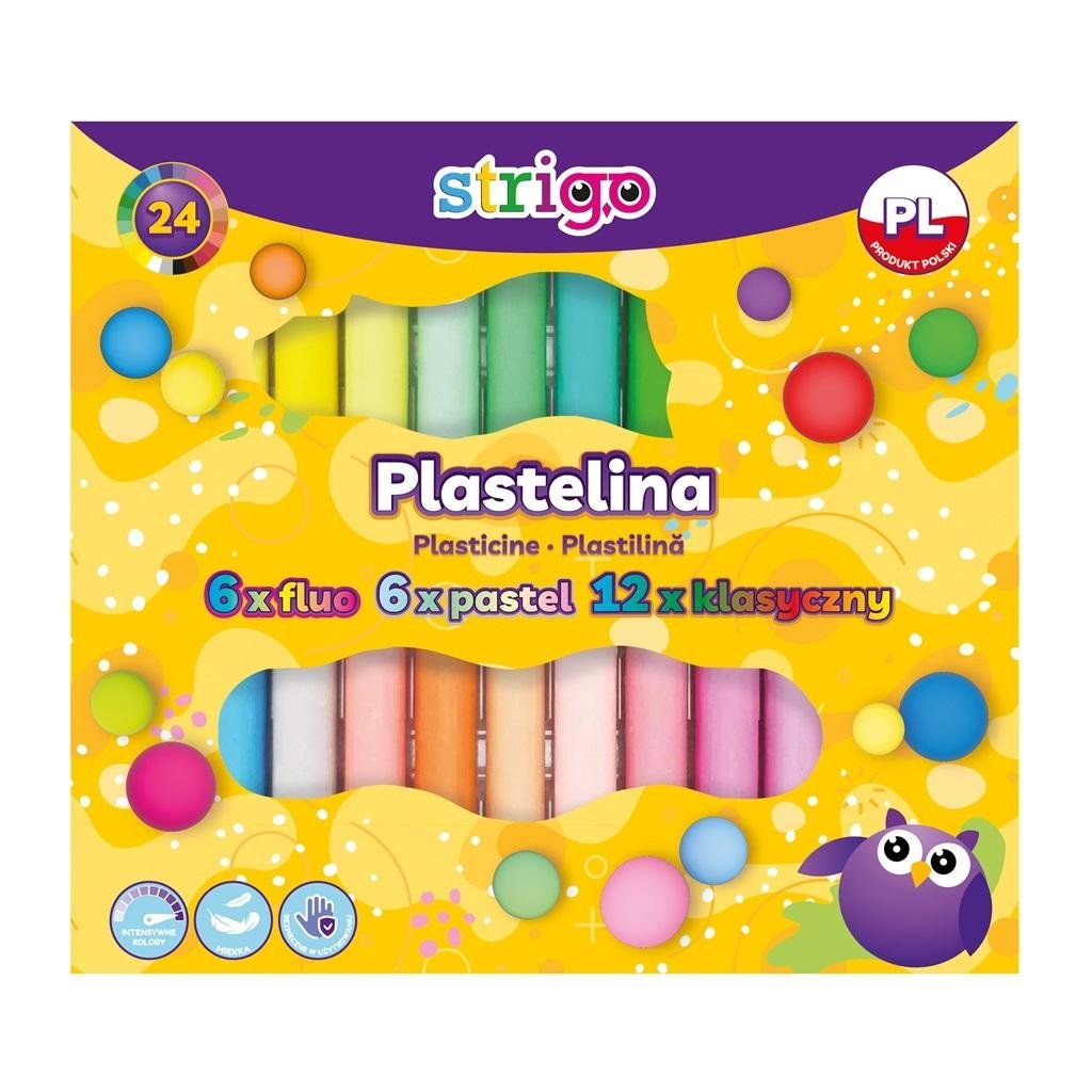 Plastelina Strigo w 24 intensywnych kolorach: 6 fluorescencyjne, 6 pastelowych oraz w 12 klasycznych. Plastelina szkolna Strigo nie wysycha na powietrzu przez co może być wykorzystywana wielokrotnie. Jest przeznaczona do nauki i zabawy. Jest bardzo elastyczna, przez co łatwo się modeluje. Nie brudzi rąk i nie przywiera do podłoża. Idealny produkt, który pobudza kreatywność nie tylko dzieci.