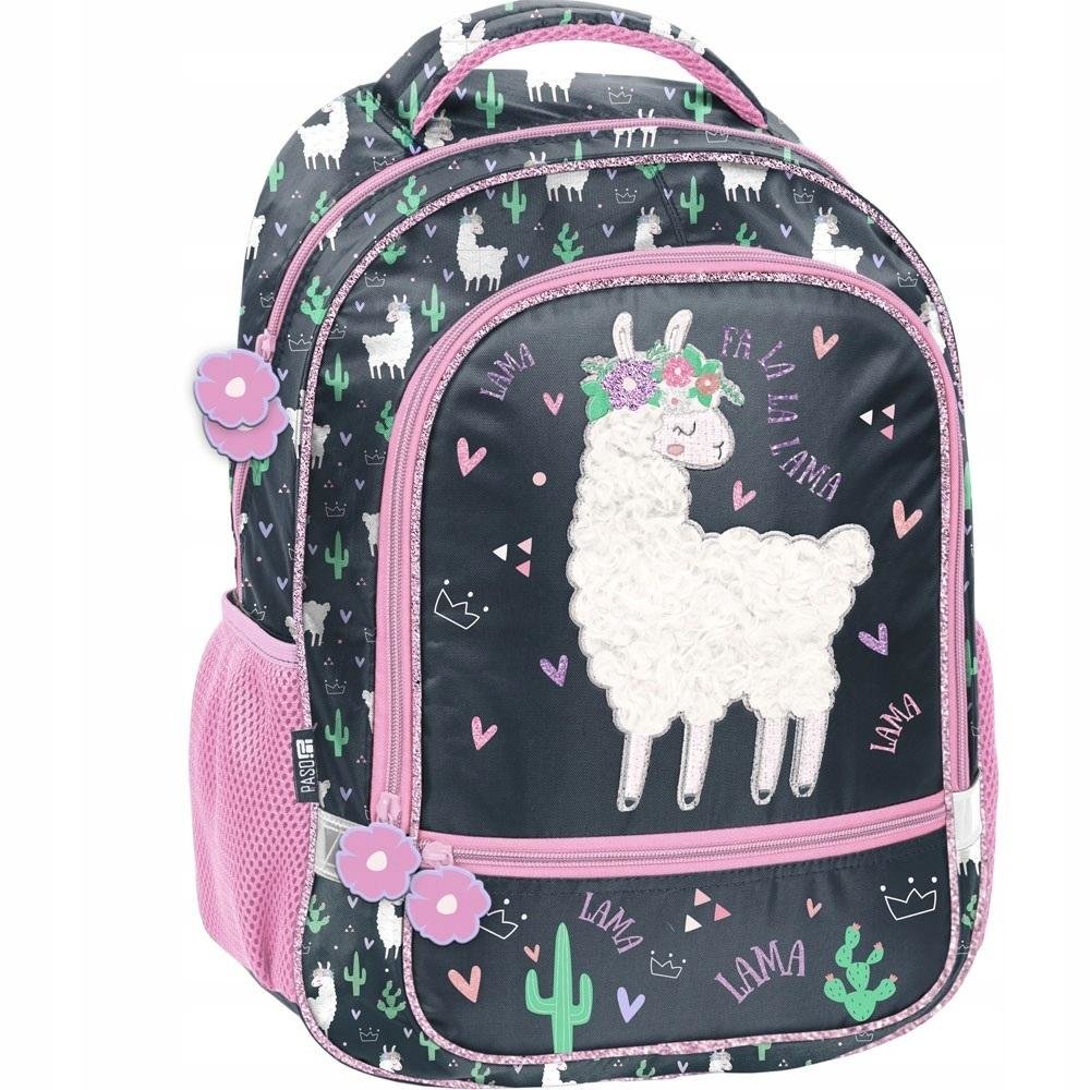 Plecak dwukomorowy szkolny, jedna płaska mała kieszeń na froncie, dwie boczne kieszenie z siatki (mieszczą małą butelkę, bidon lub termos). Elementy odblaskowe, usztywnione plecy pokryte siatką. Wygodny uchwyt do przenoszenia. Wygodne pullery ułatwiające odpinanie zamków.