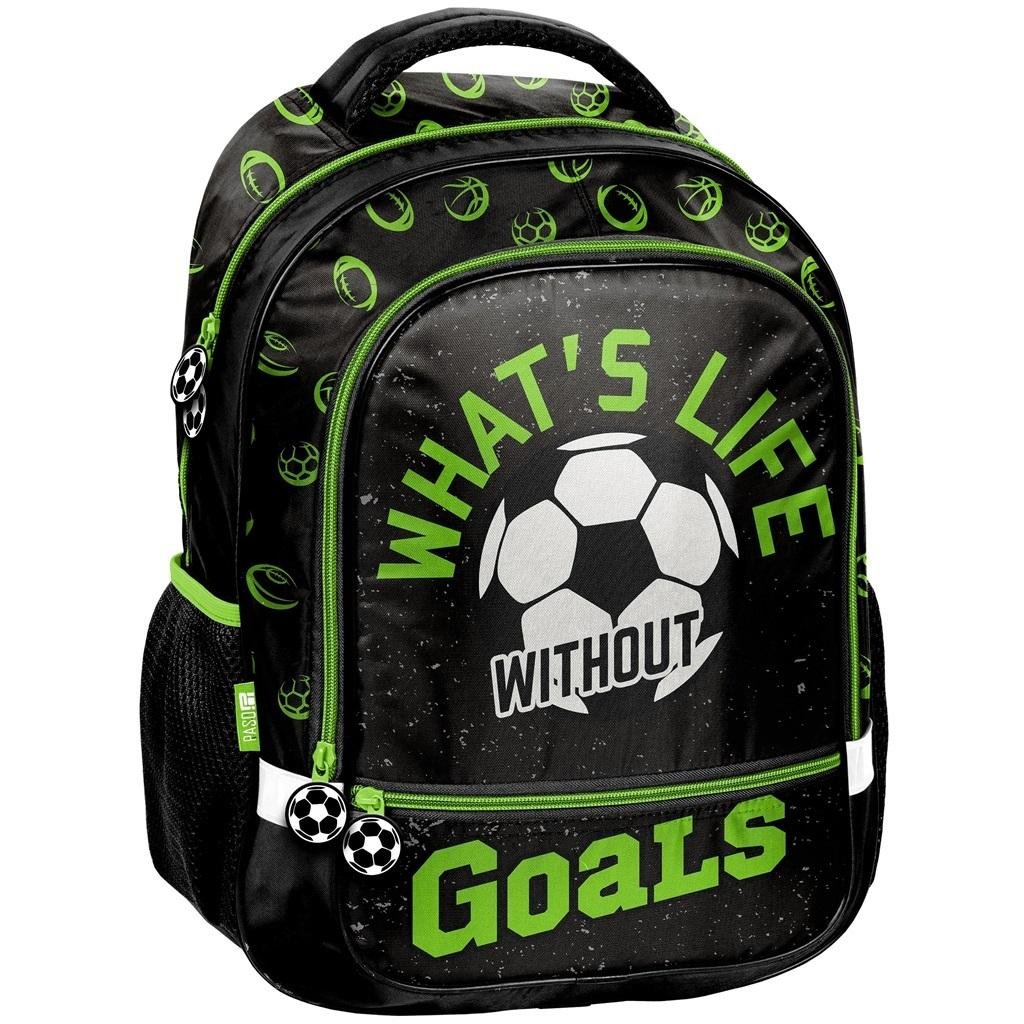 Plecak dwukomorowy szkolny, jedna płaska mała kieszeń na froncie, dwie boczne kieszenie z siatki (mieszczą małą butelkę, bidon lub termos). Elementy odblaskowe, usztywnione plecy pokryte siatką. Wygodny uchwyt do przenoszenia. Wygodne pullery ułatwiające odpinanie zamków.