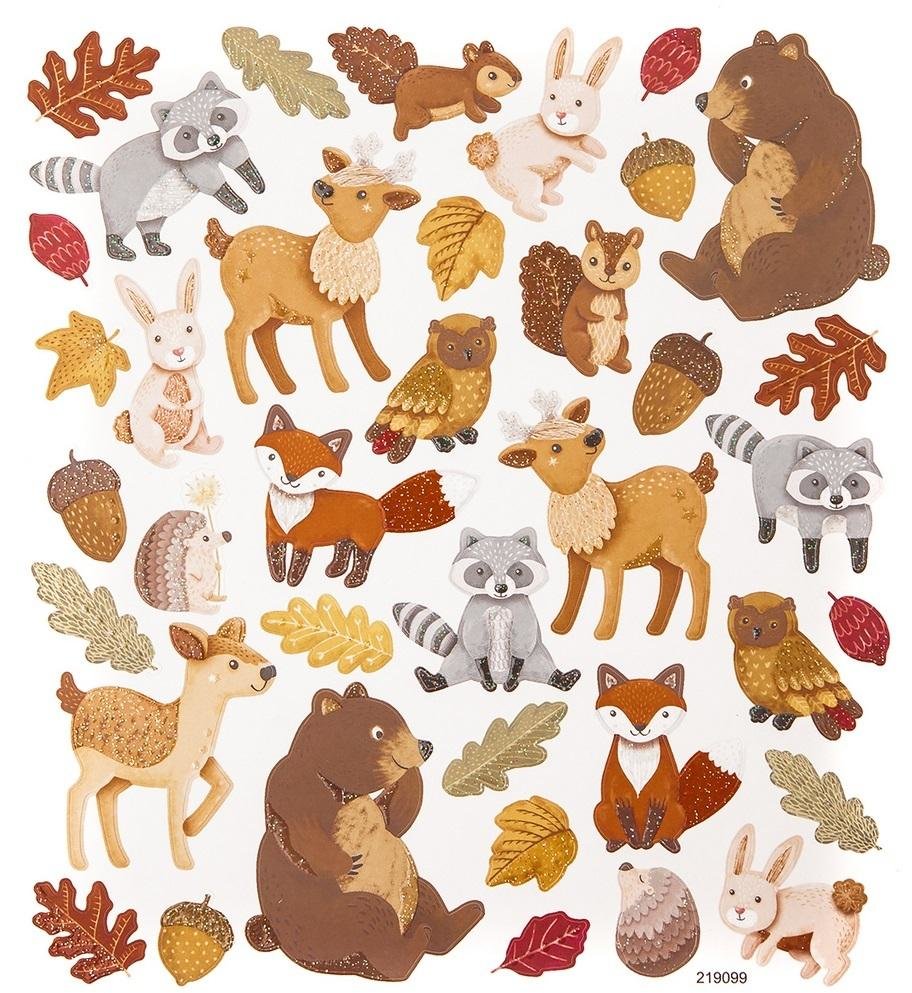 Naklejki brokatowe leśne zwierzaki 38szt