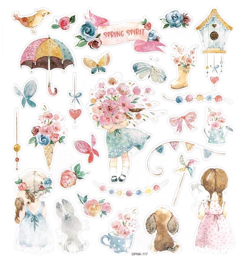 Coś dla małych i dużych! Naklejki z brokatem zaprojektowane z myślą o najmłodszych jak i profesjonalnych crafterach.Naklejki w sielskim klimacie, z motywami małych przyjaciółek należą do wiosennej kolekcji Marisella & me. Znajdziesz w niej również papiery , tasiemki i brokatowe elementy...