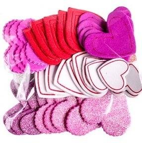 Naklejki z pianki w kształcie serc z brokatem oraz nadrukiem w kilku kolorach i rozmiarach znakomicie wyzwalają dziecięcą aktywność twórczą wszelkiego rodzaju.