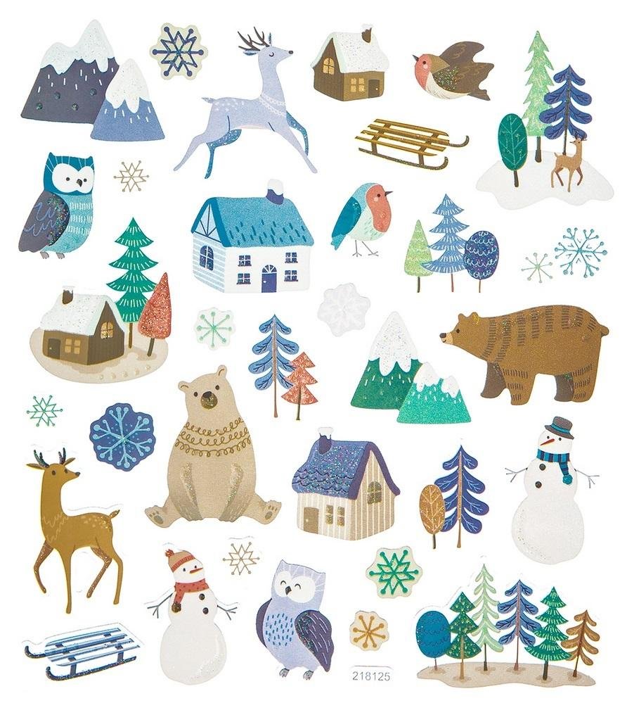 Naklejki z brokatem zimowy pejzaż 33szt