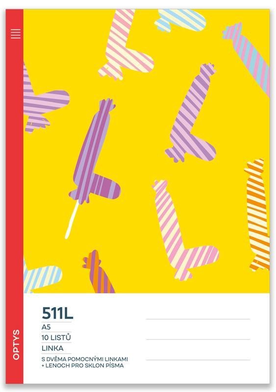 Optys Školní sešit 511L s dvěma pomocnými linkami 20 mm a s lenochem pro sklon písma - písmena