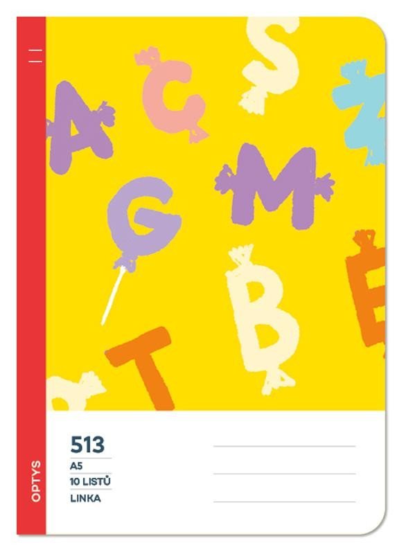 Sešit 513 je určen pro děti na nižších stupních základní školy. Formát A5 má linku o šířce 12 mm. Sešit o 10 listech má motiv písmene. Piktogram na hřbetu dětem pomáhá rozlišit, jestli je sešit vhodný do matematiky, psaní, prvouky nebo jiného předmětu. Učitelům tak usnadňuje komunikaci se žáky....