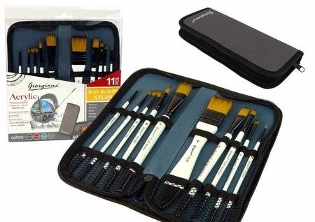 Pędzle akrylowe w piórniku 10szt